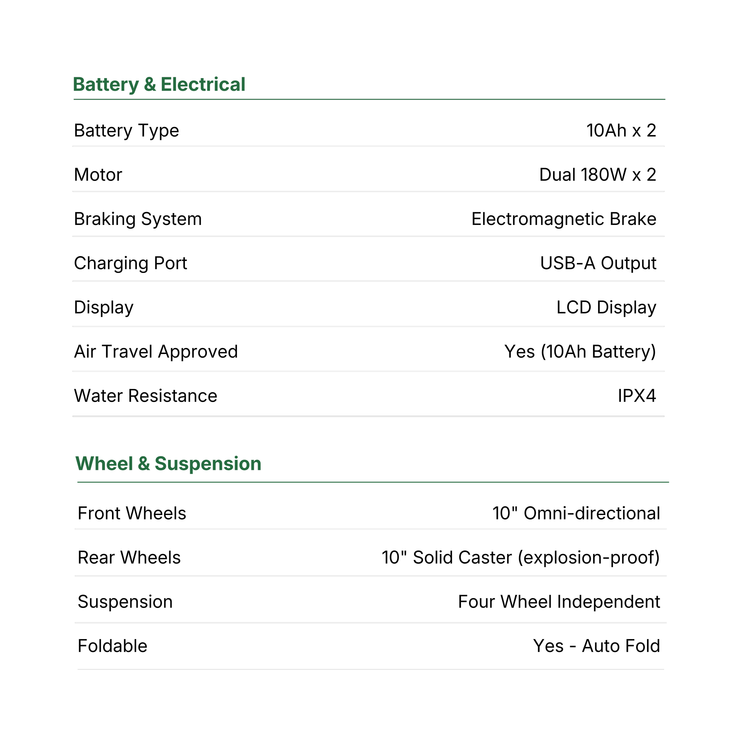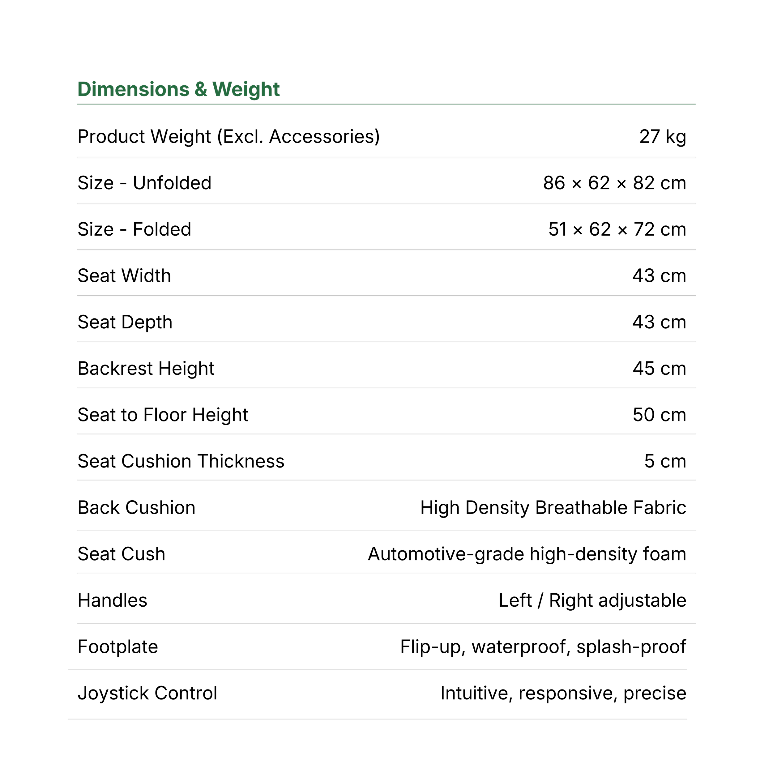 Auto fold transport means trips are planned around the person, not the equipment. Peace of mind on the road.